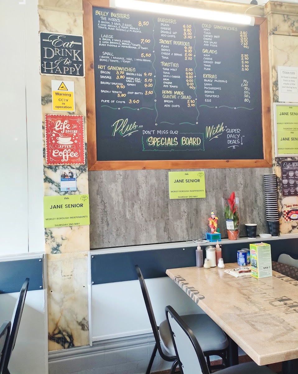 Welcome to Eric's Place, a charming café nestled in the heart of Morley, Leeds. Known for its unpretentious vibe and hearty offerings, this café is a treasured spot for breakfast lovers and lunch seekers alike. The menu boasts delicious belly busters like the renowned The Works—a large fry-up that embodies what a classic café should be. Customers rave about the perfect scrambled eggs and customizable breakfast options, ensuring everyone leaves satisfied.